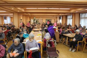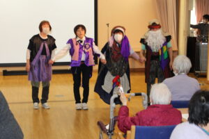 茶話会は一年、同じ階にいた人たちとお茶をするための会として毎年開催されておりましたが、今回はみんな集まって歌あり!踊りあり!で楽しみました。