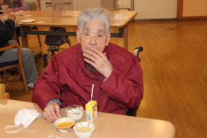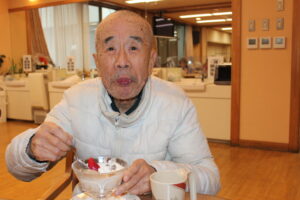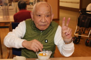 皆さまおいしそうにデザートを食べた後、リモートで園児に