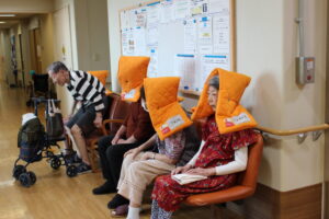 職員と入居者様とで、いつ起こるかわからない災害に備え、ルーティンとして行っている訓練ではありますが、いざという時に忘れてしまった・・では済みません。気を引き締めて訓練を行いました。
